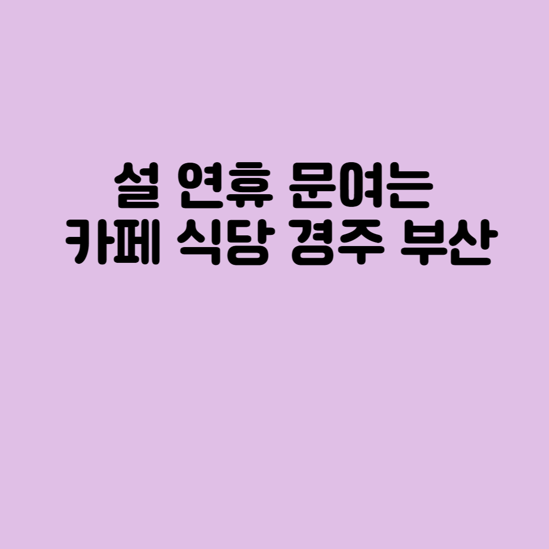 설날 당일, 부산과 경주 지역에서 영업하는 카페와 식당을 찾는 것은 쉽지 않을 수 있습니다. 하지만, 미리 정보를 확인하면 가족 및 친구들과 함께 즐거운 시간을 보낼 수 있습니다. 아래는 부산과 경주에서 설날에 영업하는 10곳 이상의 카페와 식당을 지역별로 정리해 드리겠습니다.
